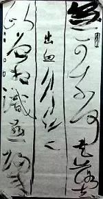 這張作品開筆是由濃墨粗線起筆的,首起都是蘸墨開始的,這是常態。那么,我們可以反常態起筆,即首起第一行,我們來個枯筆起筆,把筆豪中墨汁在廢宣紙吸干再寫字,這樣起筆也可以,會讓你想不到的藝術郊果。