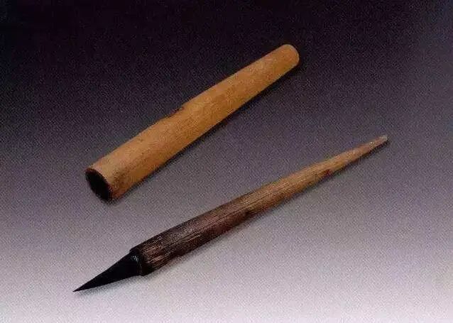 考古發現最早的第一支羊毫筆,為東晉時期的前涼毛筆,全羊毫筆頭,松木筆桿,筆桿前粗后細,形如圓錐。筆桿圓錐造型,便于抓握筆桿前端,這與晉朝時期跪坐懸肘,三指抓握筆管書寫的習慣相一致。雖然羊毫筆已誕生,但在之后相當長的時期,兔毫筆仍是社會的主流。