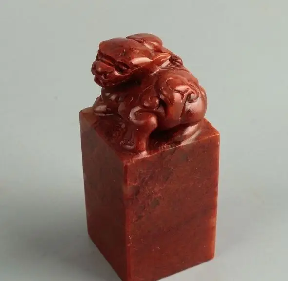明朝以后,壽山石就開(kāi)始應(yīng)用于印章材料。一塊壽山石對(duì)雕刻的大面積“留白”恰恰也是展示石材自然美質(zhì)的最佳途徑,這也就要求印石雕刻師傅一定要從印石的具體情況出發(fā),要隨形附勢(shì),將雕刻技術(shù)的美與壽山石本身的美結(jié)合起來(lái),二者渾然一體才是壽山石的最美。下圖是小編有幸見(jiàn)到的一件壽山石印章。