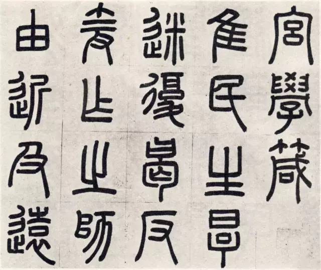 篆書有大小篆之分,其書寫的方法大致是一樣的,主要是有其文字繁簡的差別。大篆較繁,小篆較簡,其書體的結(jié)構(gòu)也就由茂密變得較為疏朗。結(jié)體上,大篆接近于甲骨文,結(jié)體錯落有致,呈自然質(zhì)樸之美。其用筆純用中鋒,用力勻平,流轉(zhuǎn)自如。小篆的結(jié)構(gòu)是以大篆演變而來,其結(jié)體較大篆更為工整齊律,呈勻稱整飾之美。其用筆不但純用中鋒,而且筆勢更為圓轉(zhuǎn)流暢,顯得樸茂端重。