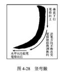 行筆過程中,要保持手腕轉(zhuǎn)動和手指捻動同步進行,以使筆畫流暢自然,如圖所示。