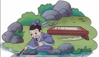 傳說(shuō),張芝練習(xí)書(shū)法時(shí)十分刻苦。他總是在池塘邊上練字,因?yàn)樵诔靥晾锵垂P十分方便。日復(fù)一日,池塘里的水竟然被他洗成了黑色,變得像墨一樣。他的勤奮努力使他在書(shū)法上飛速進(jìn)步,終于成為一位書(shū)法名家。