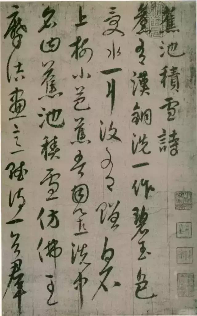 這兩個(gè)比喻是李斯同一次說(shuō)的,故而放在一起闡述??偟囊馑际怯霉P不要做作,要自然舒暢。要像魚(yú)在水中自由自在、無(wú)拘無(wú)束、舒展活潑地游動(dòng);要像景山———大山上升起的云朵一樣,飄然、悠閑、自在。意在強(qiáng)調(diào)從大自然的美中悟出用筆的規(guī)律來(lái)。