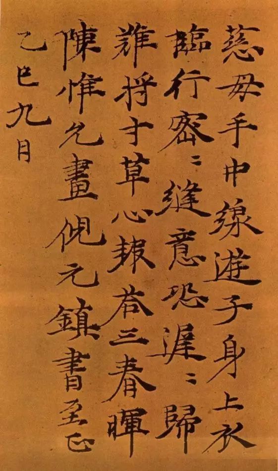 2、倪瓚小楷字形沒有唐楷的中規中矩,無論是單個字,還是整幅作品的字里行間,均參差錯落,字形的大小變化也比較大,臨寫時除了要注意參差錯落之外,避免將字形寫的大小一律,同時還要注意其單個字和整幅作品在行列和字距之間的關系,使作品的氣象更為靈動。倪瓚小楷的縱向筆畫多呈向背關系,這種特征在他的小楷作品中經常見到,其結果是字體向上向下呈開勢狀態,所以,倪瓚小楷字的左下、右下的筆畫一般都比較長,有些字在沒有豎向筆畫的前提下,依然會通過延伸左下、右下的筆畫來造勢。倪瓚小楷左右結構的字,中間都有很大的空間,這樣能產生疏密對比的視覺效果,而按照正常的寫法是不可能的。倪瓚小楷作品的章法,也頗有特色,字距相對較緊、行間距離則相對較寬,疏密有致,加上其用筆的干凈利落、清晰靈動,整篇作品頗顯淡雅清新之氣。