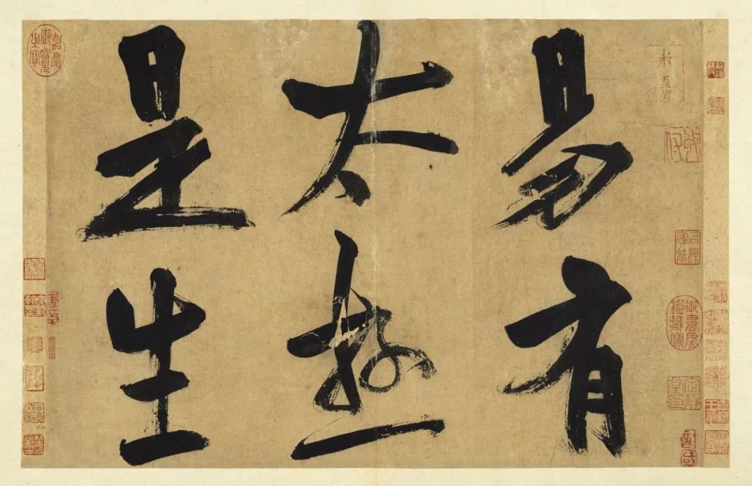 本冊所書內容節錄自《易經》的〈系辭〉上、下傳及〈說卦傳〉,共十四開,是朱熹存世僅見的大字墨跡,經元明兩代藏家之手,于清乾隆時期入宮,著錄于《石渠寶笈.初編》,為流傳有緒之作品。每行僅書寫二字,結體上重下輕,筆勢深沉而迅速,大有快劍斫陣之勢,字字筋骨突出,強健有力,筆畫墨色黝黑,時而又現飛白,精神顯得格外奕奕,為古代傳世大字書法中之佳作。