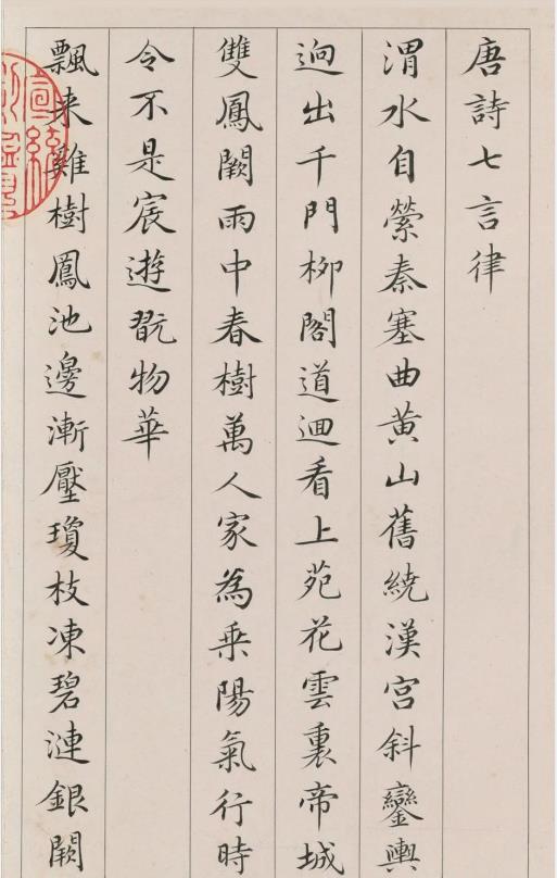 清代佚名小楷《唐詩七言律》冊,臺北故宮博物院藏。