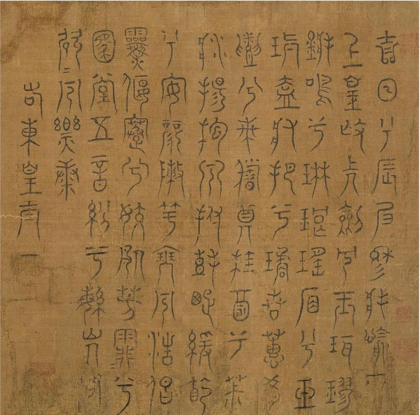 米芾篆書《九歌》,來源:宋李公麟九歌圖米芾書辭卷,絹本,臺北故宮博物院藏。