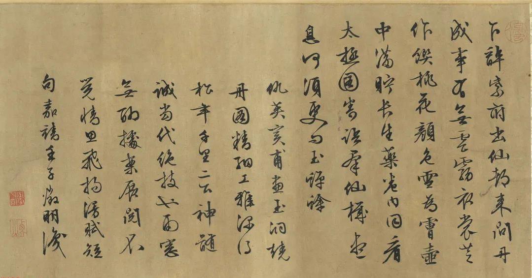 文徵明行書題仇英繪玉洞燒丹圖卷,臺北故宮博物院藏。