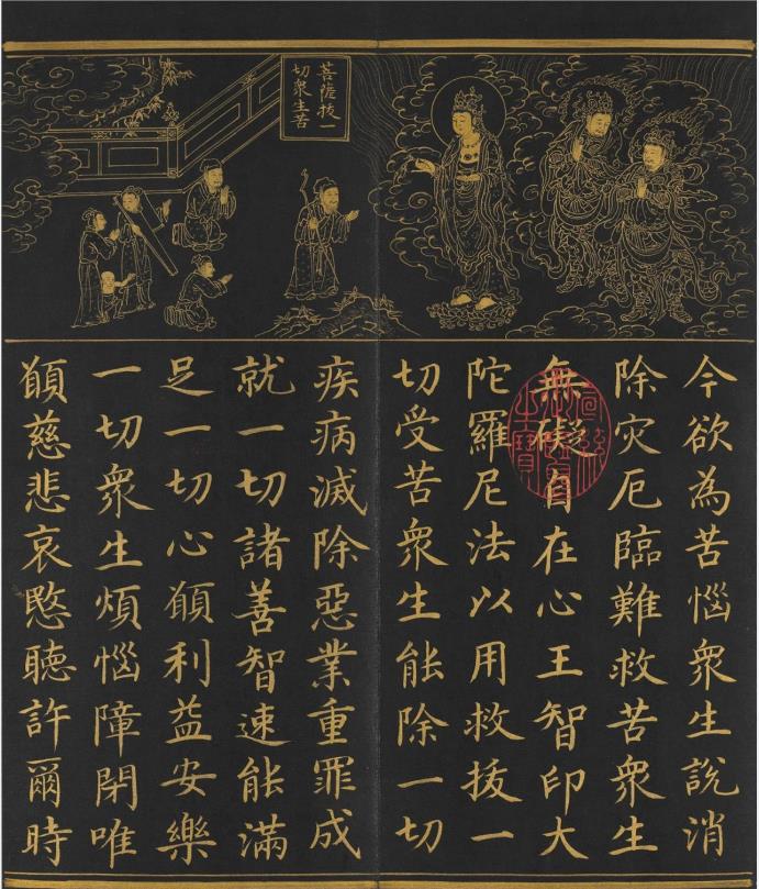 明人金字楷書《佛頂心大陀羅尼經》冊,大明宣德四年(1429)九月二十四日制,臺北故宮博物院藏。