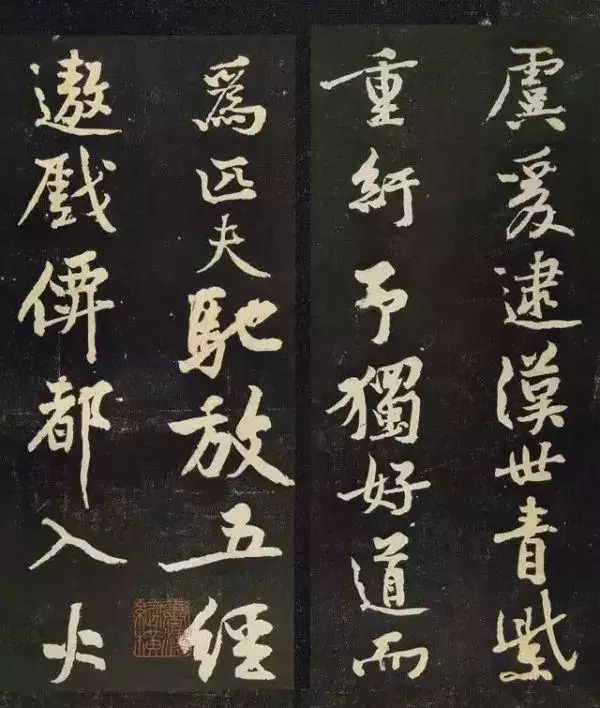 黃庭堅書法初以宋代周越為師,后來受到顏真卿、懷素、楊凝式等人的影響,又受到焦山《瘞鶴銘》書體的啟發,行草書形成自己的風格。黃庭堅大字行書凝練有力,結構奇特,幾乎每一字都有一些夸張的長畫,并盡力送出,形成中宮緊收、四緣發散的嶄新結字方法,對后世產生很大影響。在結構上明顯受到懷素的影響,但行筆曲折頓挫,則與懷素節奏完全不同。在他以前,圓轉、流暢是草書的基調,而黃庭堅的草書單字結構奇險,章法富有創造性,經常運用移位的方法打破單字之間的界限,使線條形成新的組合,節奏變化強烈,因此具有特殊的魅力,成為北宋書壇杰出的代表,與蘇軾成為一代書風的開拓者。后人所謂宋代書法尚意,就是針對他們在運筆、結構等方面更變古法,追求書法的意境、情趣而言的。黃庭堅與蘇軾、米芾、蔡襄等被稱為宋四家。