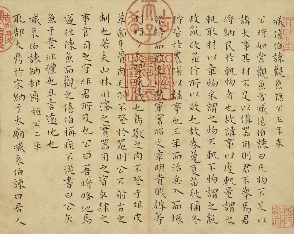 釋文:臧僖伯諫觀魚。隱公五年。春。公將如棠觀魚者。臧僖伯諫曰。凡物不足以講大事。其材不足以備器用。則君不舉焉。君將納民於軌。物者也。故講事以度軌量。謂之軌。取材以章物采謂之物。不軌不物。謂之亂政。亂政亟行。所以敗也。故春蒐。夏苗。秋獮。冬狩。皆於農隙以講事也。三年而治兵。入而振旅。歸而飲至。以數軍實。昭文章。明貴賤。辨等列。順少長。習威儀也。鳥獸之肉。不登於俎......鹿鳴。君所以嘉寡君也。敢不拜嘉。四牡。君所以勞使臣也。敢不重拜?;驶收呷A。君教使臣曰。必諮于周。臣聞之。訪問于善為諮。諮親為詢。諮禮為度。諮事為諏。諮難為謀。臣獲五善。敢不重拜。右書左傳。寵。
