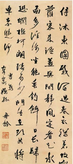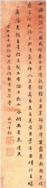 毛奇齡行書《為奉峨侄孫作七律詩軸》,紙本126×54.5cm,上海博物館藏。