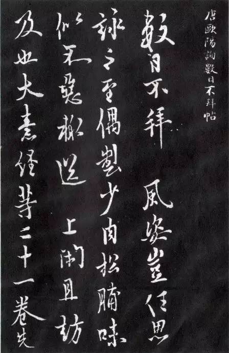 虞世南說他“不擇紙筆,皆能如意”。而且他還能寫一手好隸書。貞觀五年《徐州都督房彥謙碑》就是其隸書作品。他的書法,以隸書為最。究其用筆,圓兼備而勁險峭拔,“若草里驚蛇,云間電發。又如金剛怒目,力士揮拳。”他所寫《化度寺邑禪師舍利塔銘》,《虞恭公溫彥博碑》,《皇甫誕碑》被稱為“唐人楷書第一”。其中豎彎鉤等筆畫仍是隸筆。他的楷書無論用筆,結體都有十分嚴肅的程式,最便于初學。后人所傳“歐陽結體三十六法”,就是從他的楷書歸納出來的結字規律。他的行楷書《張翰思鱸帖》體勢縱長,筆力勁健。墨跡傳世,尤為寶貴。歐陽詢的兒子歐陽通,書法一本家傳。父子均名聲著于書壇,被稱為“大小歐陽”。小歐陽《道因法師碑》,隸意更濃,然而鋒潁過露,含蓄處不及其父?! ?/section>