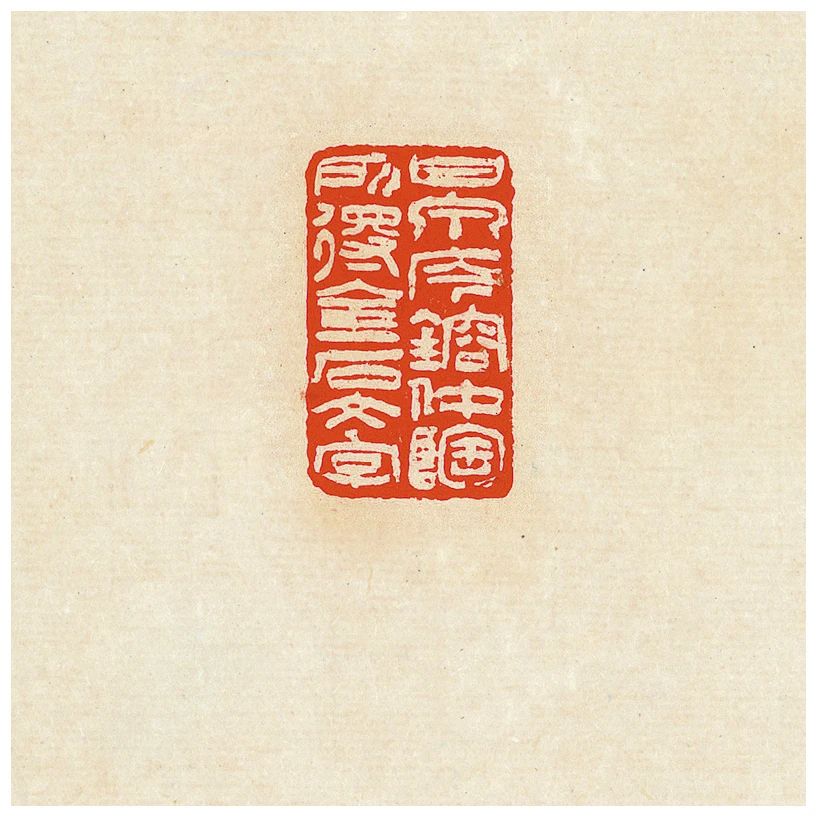 圖八“三十樹梅花書屋”一印,印文七字做六字空間安排,印面橫向中縫留紅與印面下方留紅呼應。