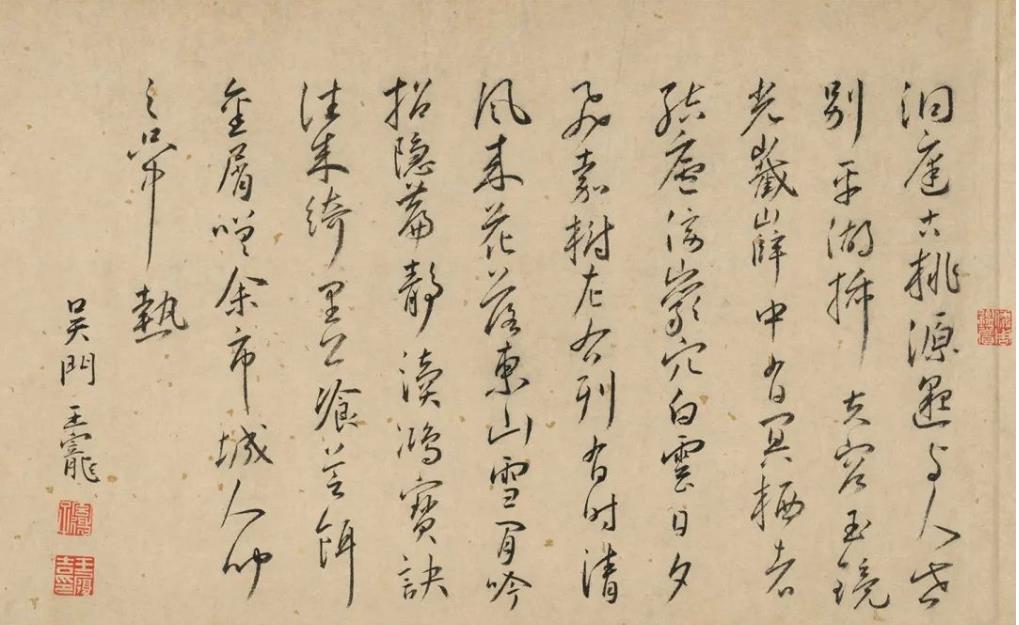 明代王寵行草書《洞庭古桃源》,來源:唐寅_桐山圖卷后題跋,故宮博物院藏。