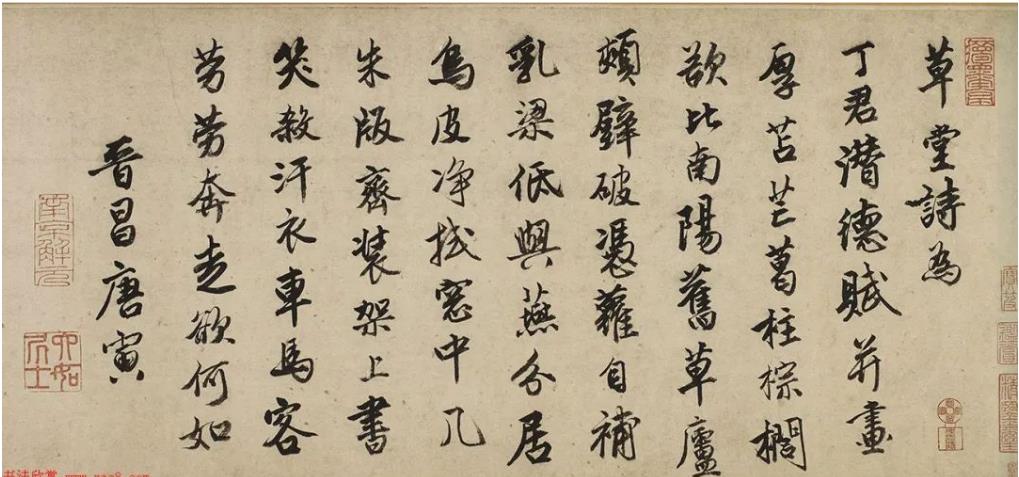 唐伯虎行書《為丁潛德賦草堂詩》,大英博物館藏。