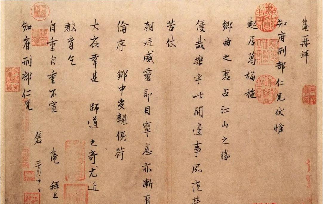 釋文:仲淹再拜,知府刑部仁兄:伏為起居萬福。施鄉(xiāng)曲之惠,占江山之勝,優(yōu)哉樂乎。此間邊事,夙夜勞苦。仗朝廷威靈,即目寧息,亦漸有倫序。鄉(xiāng)中交親俱荷大庇,幸甚。師道之奇,尤近教育,乞自重,自重。不宣。仲淹拜上,知府刑部仁兄左右。三月十日。